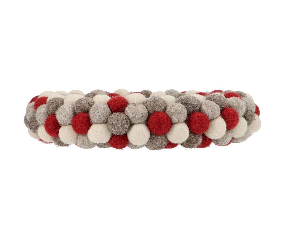 Dekoriere deine Haustür oder jeden Tisch mit diesem wunderschönen Weihnachtskranz, gefertigt aus bunten Pompons aus 100 % natürlicher Schafwolle. Jeder Kranz wird von erfahrenen Handwerker:innen am Fuße der Hügel von Kathmandu (Nepal) mit viel Liebe handgefertigt – jedes Stück ein kleines Kunstwerk mit individuellem Charakter.