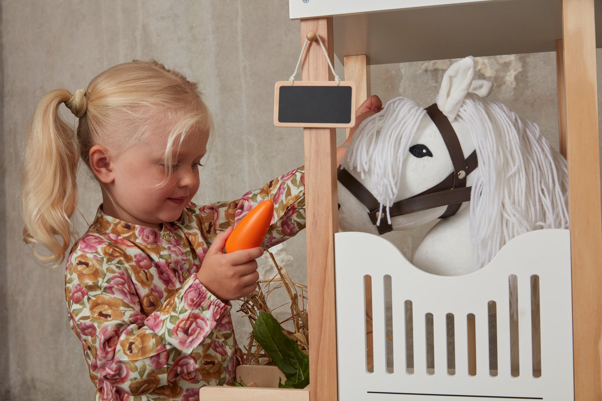 Dieses Steckenpferd lädt zu fantasievollen Rollenspielen drinnen und draußen ein. Du kannst es füttern, pflegen, frisieren oder schöne Dressurzöpfe flechten – die Möglichkeiten sind grenzenlos.