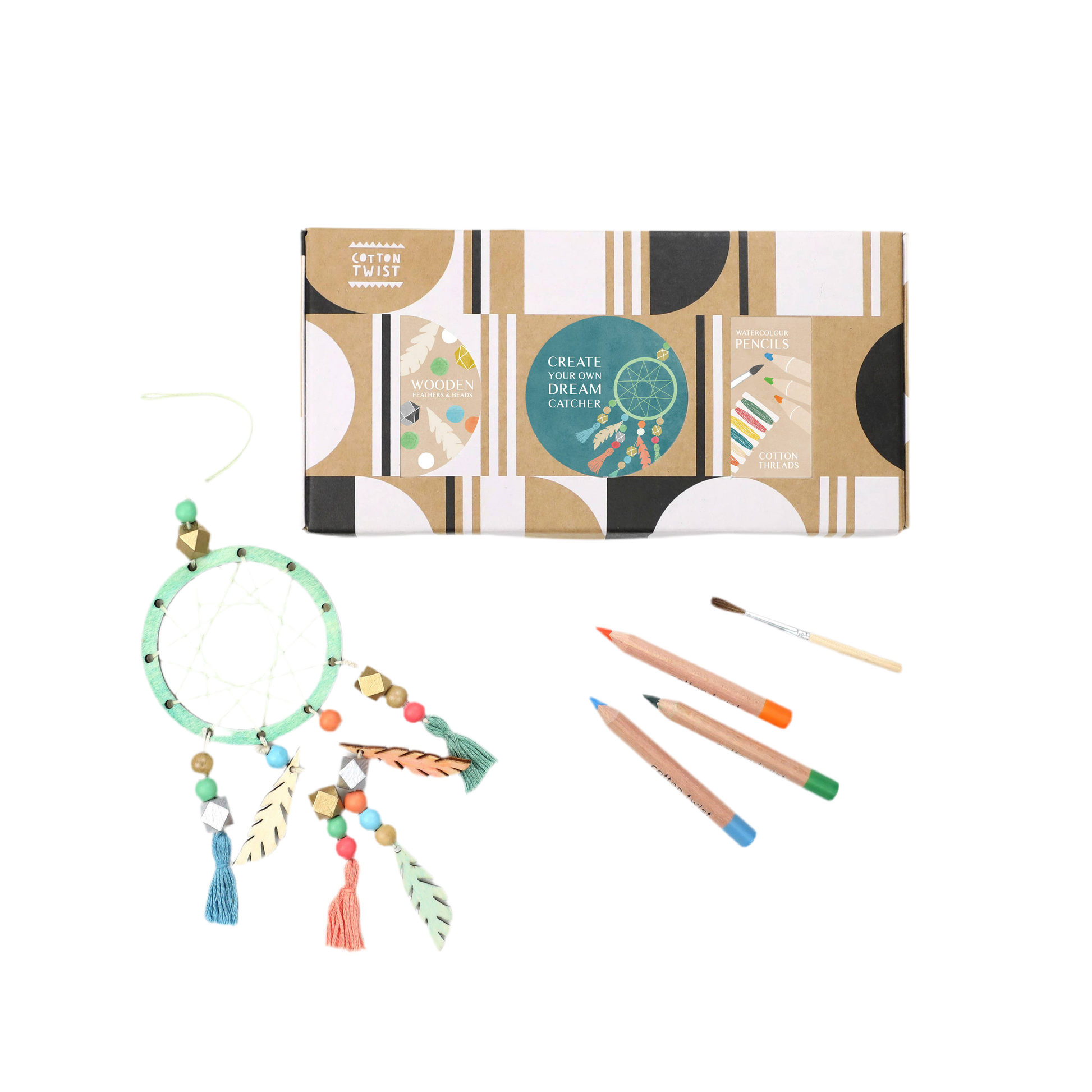 Mit diesem Set können Kinder individuelle Traumfänger gestalten, die Farbe und Persönlichkeit ins Kinderzimmer bringen. Die mitgelieferten Aquarellstifte ermöglichen es, einzigartige Farbvarianten zu kreieren, während Fäden, Holzperlen und Federn für den letzten dekorativen Schliff sorgen. Drei Farbvorschläge geben Inspiration, lassen aber Raum für eigene Ideen.
