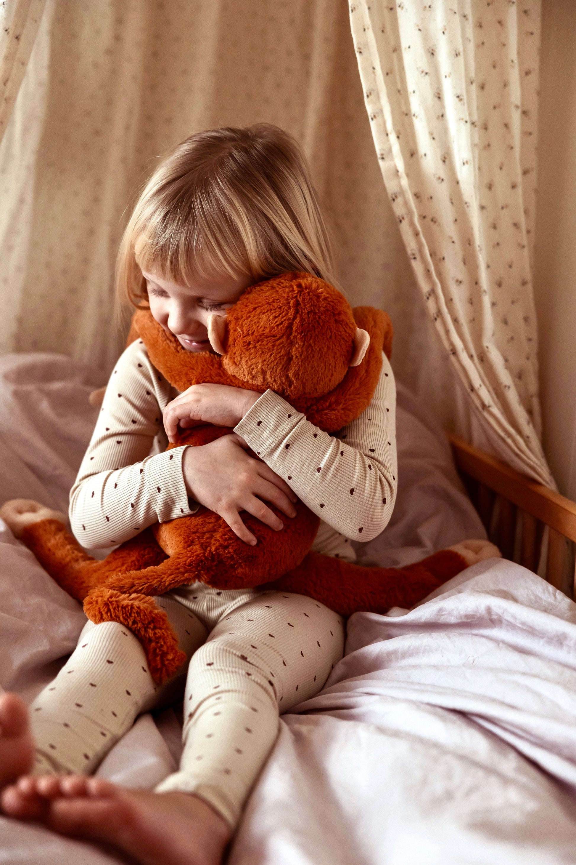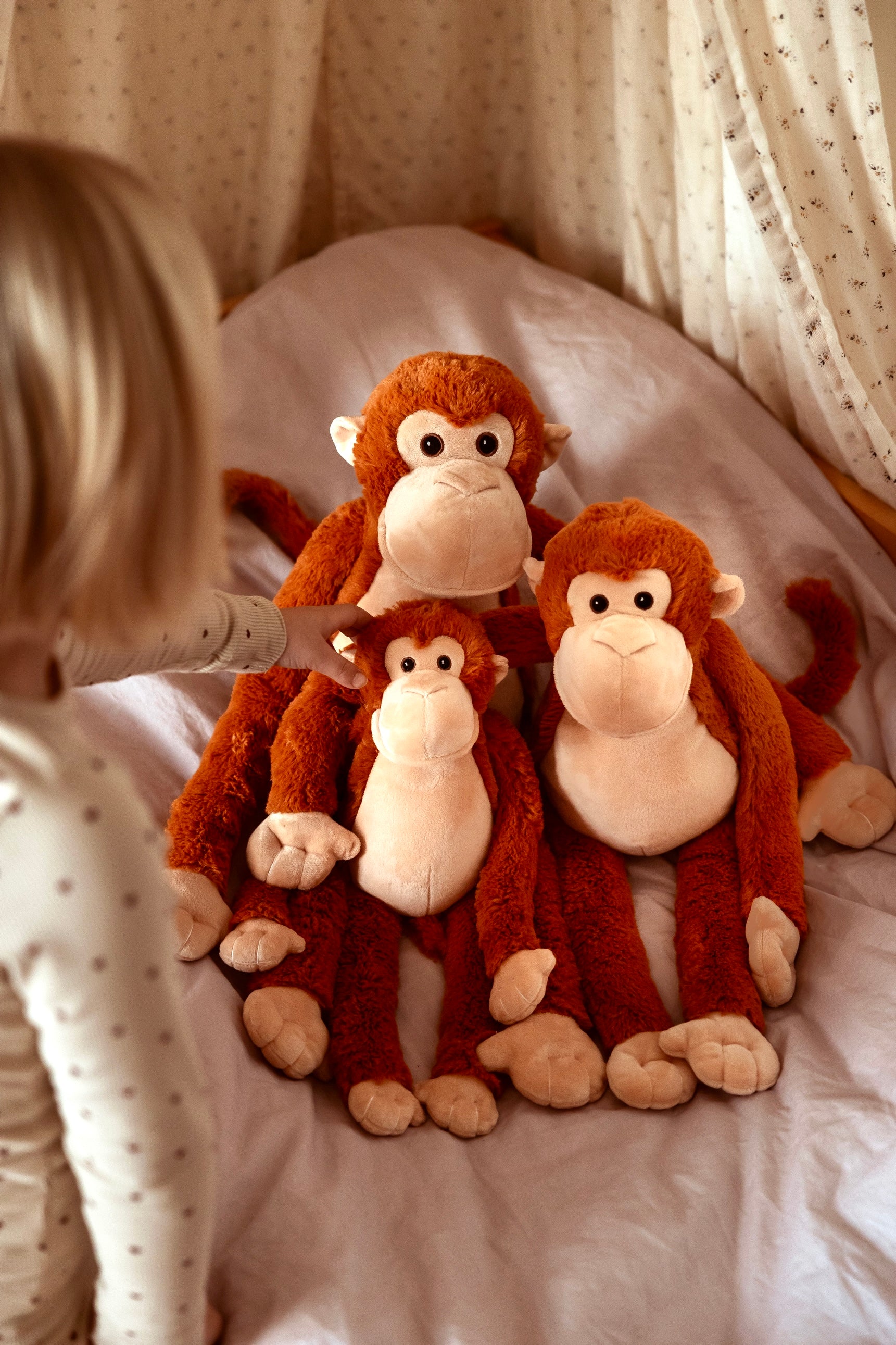 Dank seines therapeutischen Gewichts sorgt der Plüschaffe für Entspannung, innere Ruhe und ein Gefühl von Sicherheit – besonders wertvoll für Kinder mit sensorischen Empfindlichkeiten oder Ängsten. Ob zu Hause, auf Reisen oder für eine kleine Pause zwischendurch: dieser Affe ist immer da, wenn ein bisschen Extra-Komfort gebraucht wird.