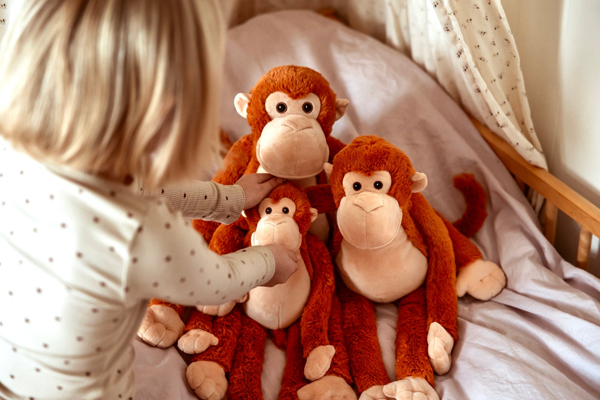 Als mittelgroßer Freund der ByASTRUP®-Affenfamilie bietet dieser liebevolle Begleiter genau die richtige Größe, um Kindern jeden Alters beruhigende Umarmungen und Geborgenheit zu schenken. Mit seinem Gewicht von 1,1 kg, dem ultra-flauschigen Fell, den warmen Rot- und Sandtönen und seinem fürsorglichen Ausdruck wird er schnell zum Liebling im Kinderzimmer.