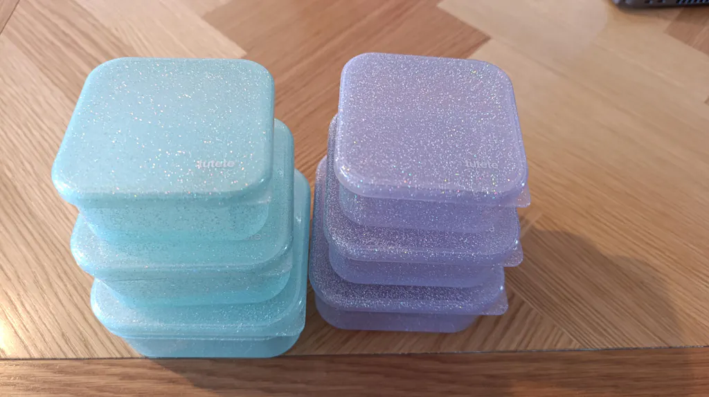 Set mit 3 fantastischen Glitter-Lunchboxen, um verschiedene Arten von Lebensmitteln getrennt zur Schule, auf Ausflüge oder überall hin mitzunehmen.