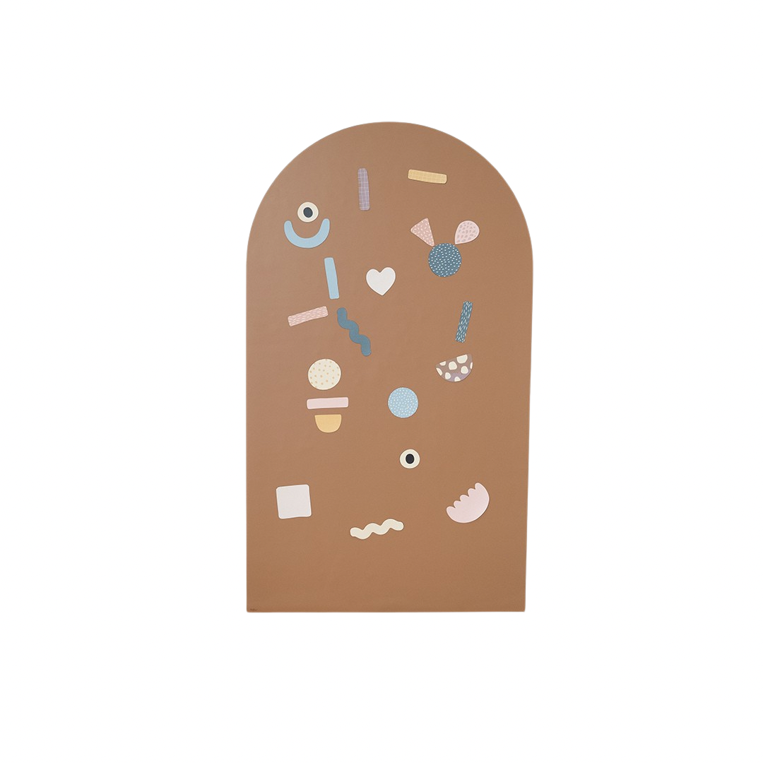 Mach’s Dir schön – mit der farbigen Bogen-Magnetwand holst Du Dir den Arch-Trend direkt nach Hause! Die magnetische Wandtafel lässt sich dank des repositionierbaren Klebers superleicht anbringen und bei Bedarf ganz einfach wieder ablösen. Sie ist nicht nur ein echter Blickfang, sondern auch eine kreative Spielfläche für kleine und große Hände. Die karamellfarbene Oberfläche bringt Wärme in jedes Zimmer und lässt sich ganz unkompliziert austauschen. Mit dabei ist ein verspieltes Magnet-Set aus bunten, geometrischen Formen – perfekt zum Gestalten, Spielen und immer wieder neu Entdecken. Gefertigt wird das Set mit viel Liebe in Frankreich – für ein Zuhause voller Ideen und Lieblingsmomente.