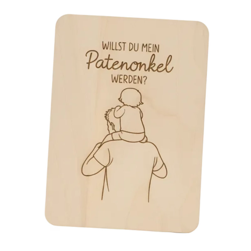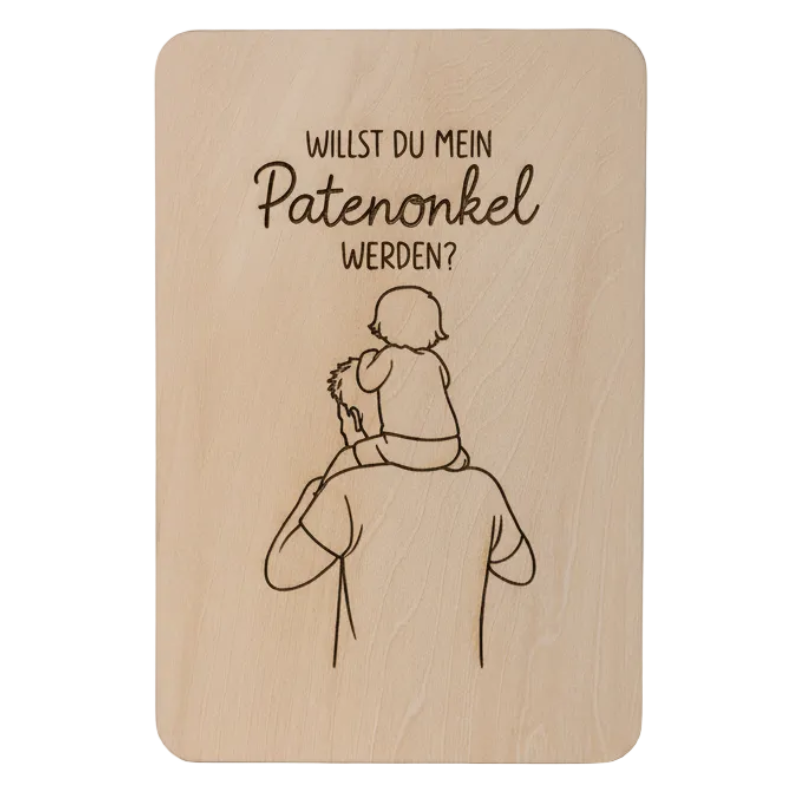 Holzkarte *Willst du mein Patenonkel werden* handgefertigt