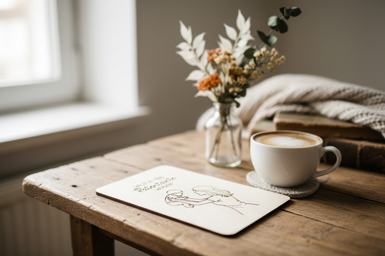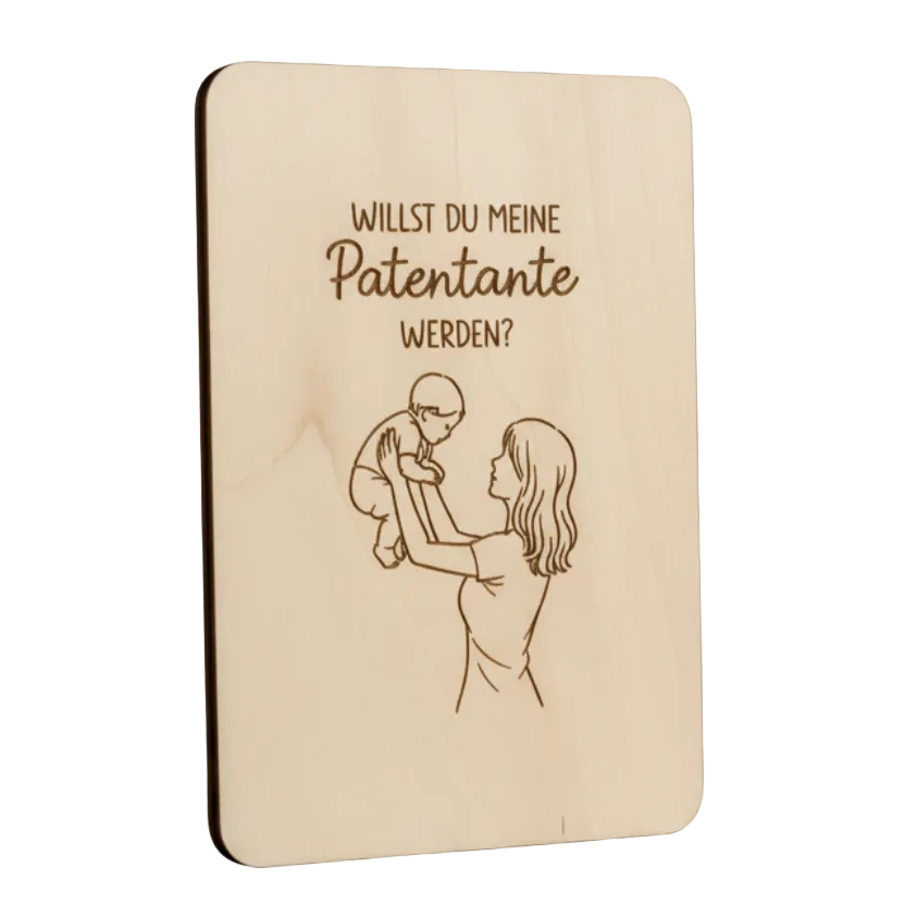 Unsere handgefertigte Holzkarte „Willst du meine Patentante werden?“ ist eine liebevolle Art, diesen wichtigen Schritt zu teilen – ganz ohne große Worte, dafür mit viel Gefühl.