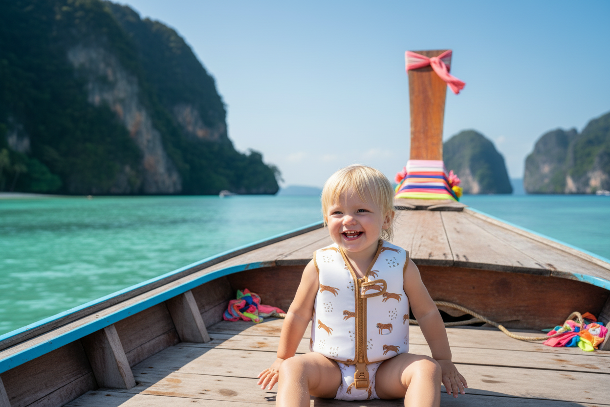 Dank der durchdachten Passform sitzt die Weste sicher am Körper und lässt sich leicht an‑ und ausziehen – perfekt für aktive Kleinkinder, die sich frei im Wasser bewegen möchten.